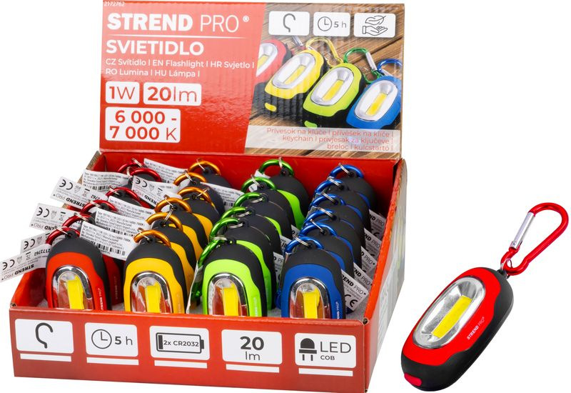Svietidlo Strend Pro Keychain, kľúčenka, prívesok, s karabinkou, mix farieb, LED 20 lm, 70x34x24 mm,