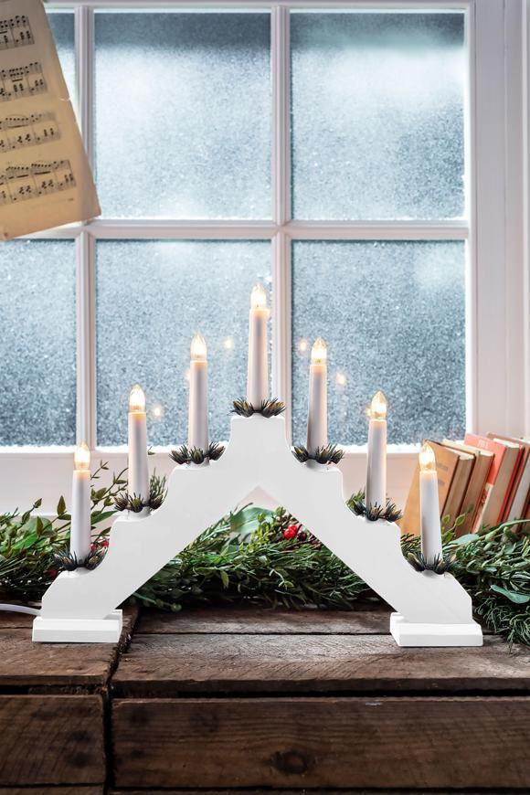Svietnik MagicHome Vianoce, 7 LED teplá biela, biely, 2xAA, interiér, 39x31 cm