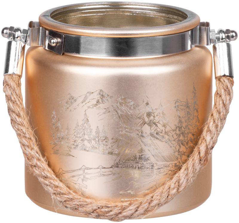 Svietnik MagicHome Vianoce, zlatý, s krajinkou, s lankom, 10x10 cm