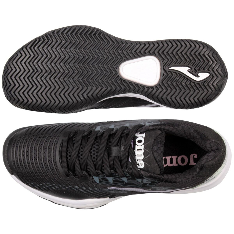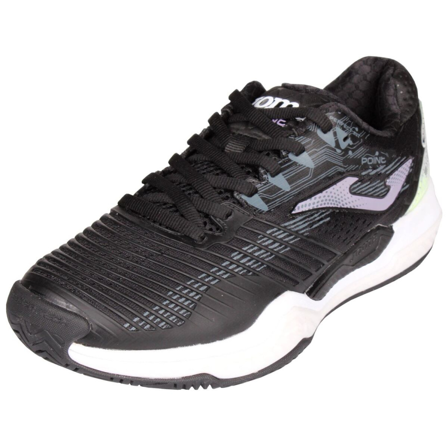 Dámska tenisová obuv JOMA T.Point Lady 2301 je navrhnutá pre pravidelné a klubové hráčky, ktoré od obuvi veľa vyžadujú. Topánky poskytujú dokonalú kombináciu stability, dynamiky a tlmenia pre hru na tej najvyššej úrovni. Zvršok je vyrobený z ľahkej, pružnej a priedušnej textílie. V tomto materiáli sú malé perforácie VTS pre lepšie odvetrávanie nohy. Na zvršku má tepelne utesnenú gumu prostredníctvom technológie JOMA SPORTECH, ktorá chráni nohu a optimalizuje prispôsobenie. V šnurovaní a na bočnej strane topánka obsahuje bezšvovú syntetickú vložku, ktorá taktiež prispieva k lepšiemu prispôsobeniu nohy. Rovnako tak je päta vystužená vzperami EXO COUNTER, ktoré dodávajú oblasti stabilitu a chránia ju. Šnurovanie bolo vylepšené pre zvýšenie podpory a pohodlia pomocou systému PERFECT FIT. Medzipodrážka je skonštruovaná z vysoko kvalitného phylonu, ktorý zaručuje odpruženie každého kroku, s väčšou výškou na boku vďaka použitej technológii PROTECTION. Dvojitý systém Stabilis: tvrdý kus na boku a ďalší kus na podrážke, ktorý zabraňuje nevhodnému natočeniu prednej a zadnej časti chodidla, a tým predchádza zraneniam. Gumová podrážka DURABILITY zaručuje vysokú odolnosť proti oderu.