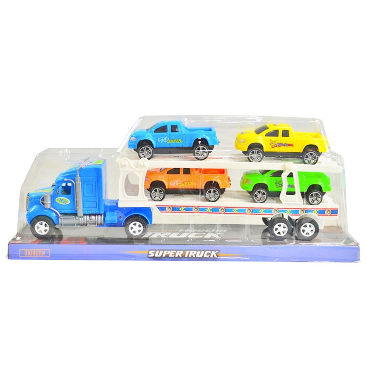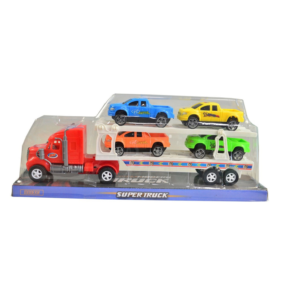 Ťahač s autami, na zotrvačník. Na výber z viacerých farieb. Cena za kus. Hračka je určená pre deti 3+. Rozmer hračky je 31,4x13,2x8,5cm.