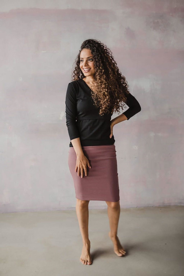 Tehotenské a dojčiace tričko Milk Shirt milk & love s výstrihom do V. Tričko, ktoré uľahčí dojčenie je vyrobené z kvalitnej bavlny s prídavkom elastanu, vďaka ktorému sa nevyťahuje a po vypraní sa vracia do pôvodného tvaru. Preto vyzerá skvele aj po tehotenstve a je možné ho používať aj pri dojčení. Jednoduché otváranie slučkou umožňuje veľmi rýchlo nakŕmiť hladné bábätko.
