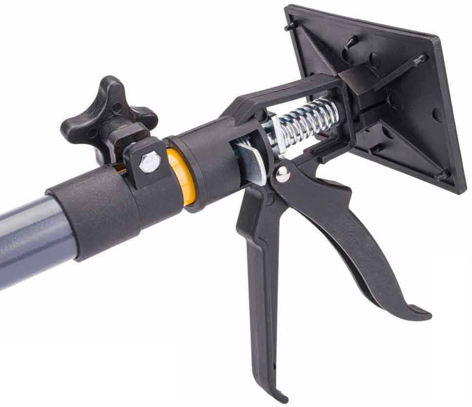 Podpera nájde svoje uplatnenie napr. pri inštalácii stropných (sadrokartónových) dlaždíc, alebo pri opravách lepených povrchov. Teleskopická funkcia umožňuje nastavenie výšky a sklopné prítlačné platne zaisťujú stabilné upevnenie.