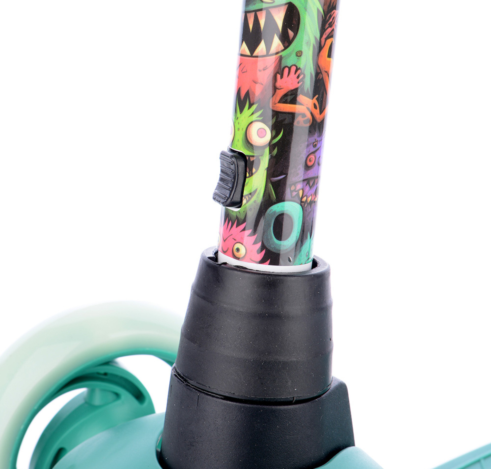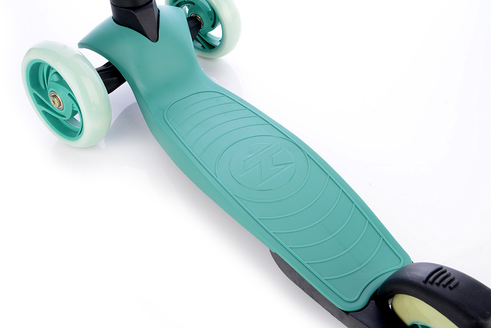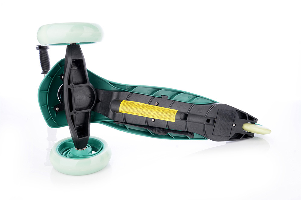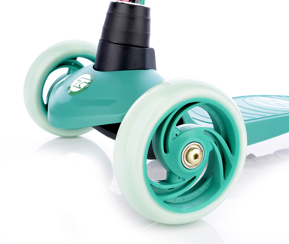 Bezpečná kolobežka so zvýšenou stabilitou pre začiatočníkov. Predné kolieska sú vybavené LED svetlami fungujúcimi na princípe magnetu bez použitia batérií. Predná náprava sa otáča klasickým spôsobom ako pri bežných kolobežkách, nie prenášaním hmotnosti jazdca do strany. Z bezpečnostných dôvodov má kolobežka obmedzený maximálny uhol otáčania. Kolobežka sa skladá pomocou odnímateľnej riadiacej tyče, ktorú možno pripevniť zo spodnej strany dosky pomocou upínacieho systému. Anatomicky tvarované riadidlá majú rukoväte pohlcujúce vibrácie s bočnou ochranou proti poškodeniu riadidiel pri páde alebo preprave kolobežky. Doska má úžitkovú plochu 29 x 10,5 cm. Nastaviteľná výška riadidiel v 3 polohách: 54 cm, 62 cm, 70 cm od zeme.