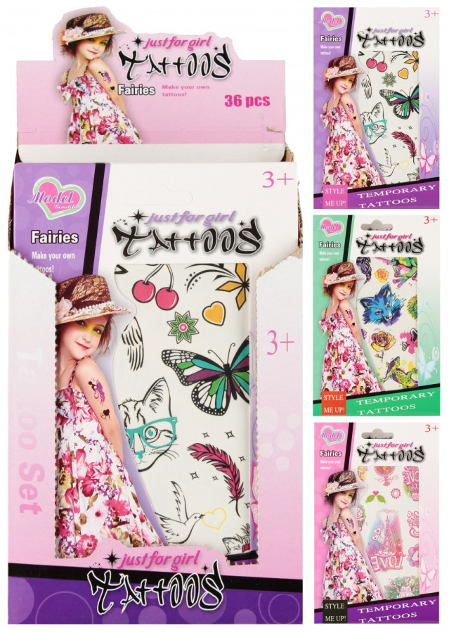 Tetovanie pre dievčatá, má rozmery 19 x 12 cm. Na výber zo štyroch variánt. Cena je za 1 kus. Vhodné pre deti 3+.