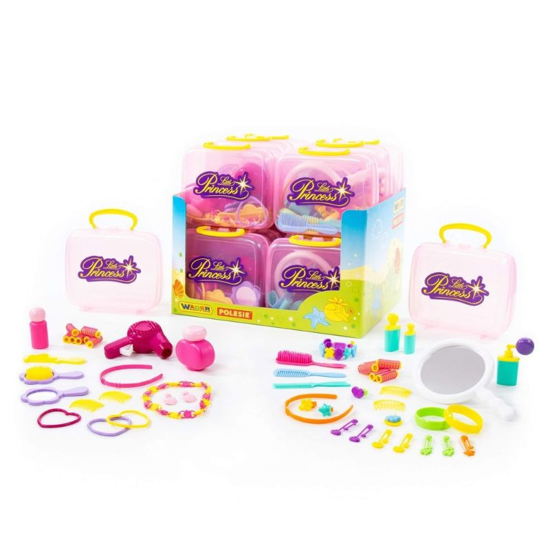 Toaletný stolík Malá princezná v praktickom kufríku ponúka deťom zábavnú hru na skrášľovanie a úpravu vzhľadu. Sada obsahuje 16 doplnkov, ako sú zrkadielko, hrebeň, kozmetické pomôcky a ďalšie príslušenstvo, s ktorými si deti môžu vytvárať vlastné príbehy zo sveta krásy. Kufrík umožňuje jednoduché prenášanie aj uskladnenie všetkých doplnkov. Cena je uvedená za jeden kus.