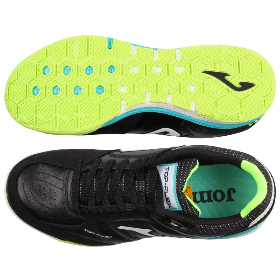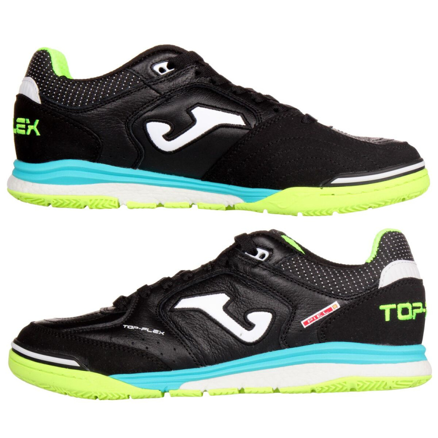 Topánky na futsal a halové športy Joma Top Flex Rebound 2301 patria medzi špičkové modely určené pre pravidelných a skúsených hráčov, ktorí hľadajú funkčné topánky poskytujúce skvelý výkon. Oproti klasickému modelu Top Flex majú pridané ďalšie tlmenie, ktoré dopĺňa kombináciu technológií. Zvršok je vyrobený z kože, ktorá prispieva k pružnosti, odolnosti a priedušnosti obuvi. Ponúka neuveriteľnú trakciu, ovládanie a výkon. Pre lepšie odvetrávanie je zvršok vybavený technológiou VTS, ktorá umožňuje prúdenie vzduchu dovnútra a von z topánky. Na špičke majú topánky výstuhu, ktorá má hráčovi umožniť pevný úder do lopty. Čo sa týka medzipodrážky, je tento model topánok na futsal vybavený revolučnou technológiou FULL DUAL PULSOR - systémom s dvojakou hustotou, ktorý tlmí dopad nohy. Na zvršku je medzipodrážka vyrobená z tvrdšieho phylonu, zatiaľ čo spodná vrstva je tvorená systémom REACTIVE BALL. Podrážka je vyrobená z gumy DURABILITY, ktorá je odolnejšia proti opotrebovaniu na krytých ihriskách.