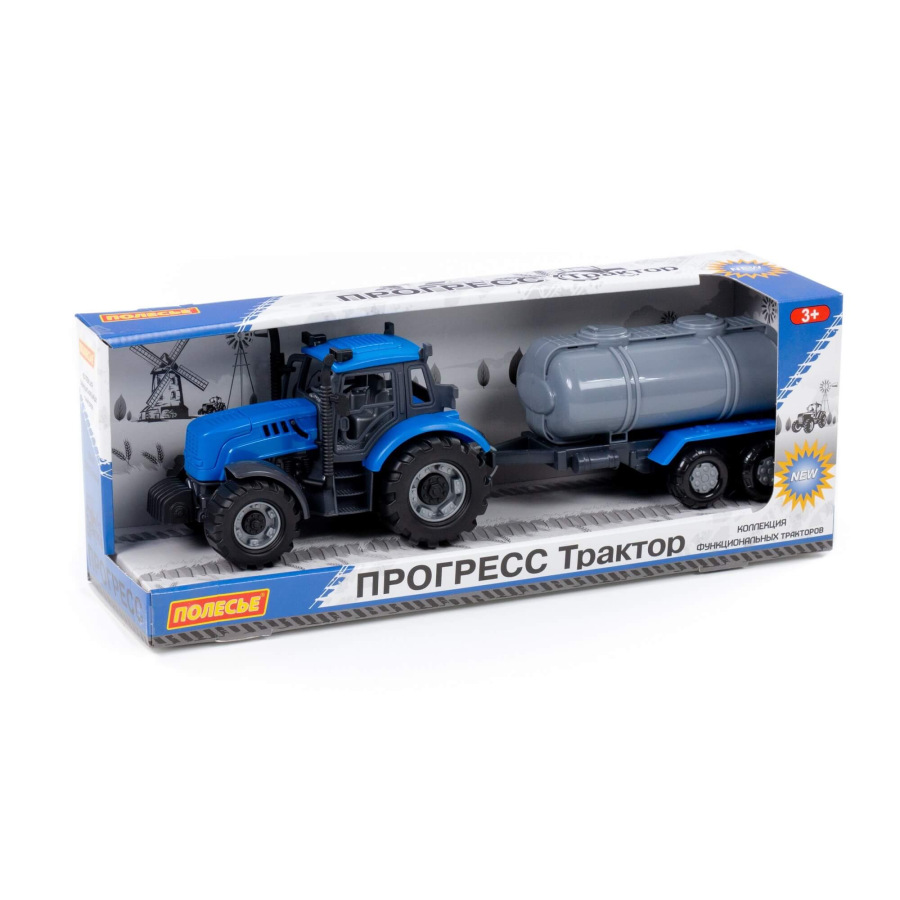 Inerciálny traktor Progress z továrne Polesie je hračkou analógu skutočného špeciálneho vybavenia. Dizajn traktora je vyrobený čo najpodrobnejšie, kapotu traktora je možné počas hry zaaretovať v otvorenej polohe pre opravu. Prítomnosť prívesu s tankom spestrí scenáre detských hier. Traktor je vybavený inerciálnym mechanizmom, ktorý zvyšuje priechodnosť na rôznych povrchoch. Je vzrušujúce hrať sa s ním doma aj na čerstvom vzduchu. Hračka je dodávaná vo svetlej krabici.