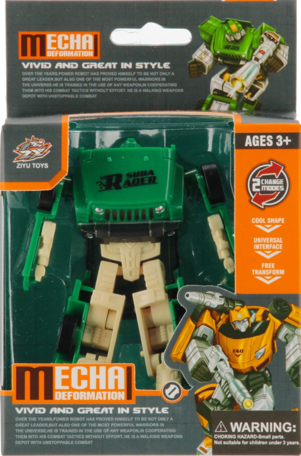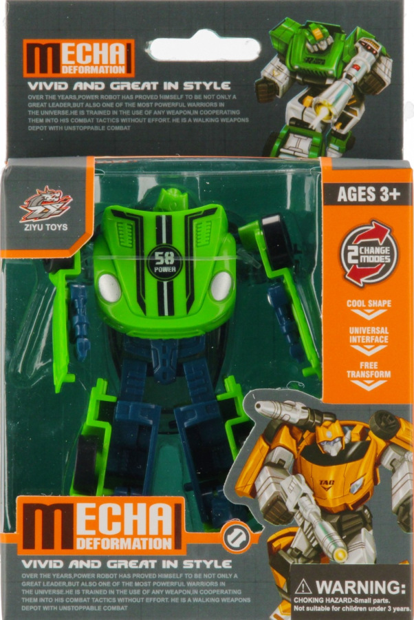 Transformujúci robot v ôsmich variantoch farieb a dizajnov – vďaka jednoduchému mechanizmu sa zmení na auto a späť! Skvelá hračka pre deti, ktoré milujú stroje, premeny a akciu. Mix variantov, odosielané náhodne. Určené pre deti od 3 rokov. Cena za kus.