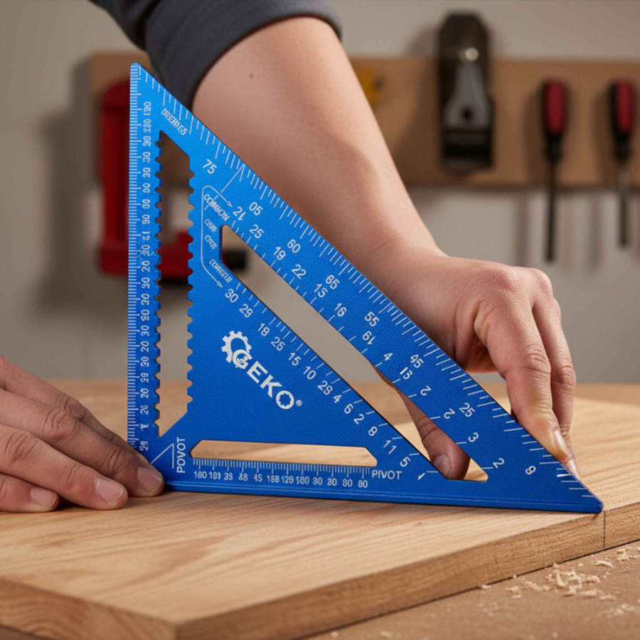 Tesársky uholník vyrobený z vysoko kvalitného hliníka , ktorý zaisťuje presné merania a pohodlie pri tesárskych, stavebných a dokončovacích prácach.