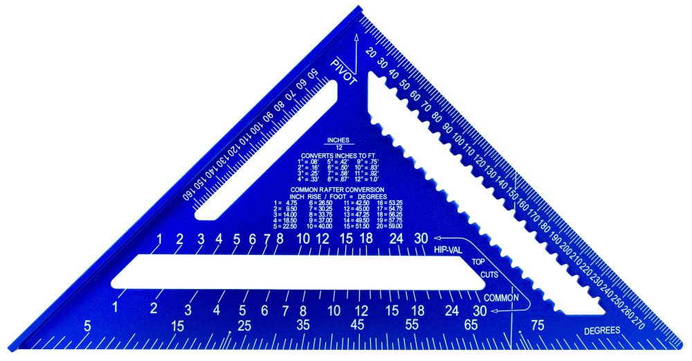 Bežný prevod krokiev (palcový sklon / stopa = stupne ) – prevodník „stúpania na stopu“ na stupne sklonu – užitočný pre strešné konštrukcie.