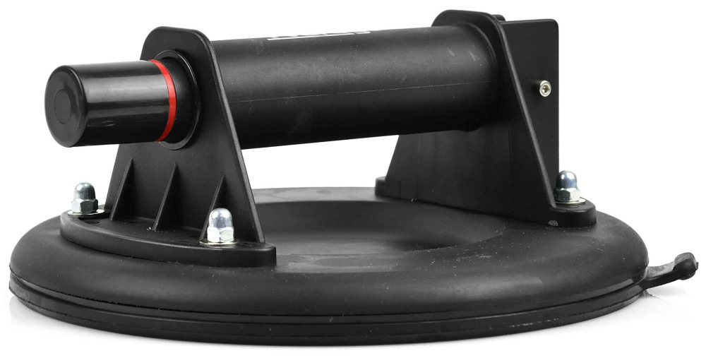 Držiak-Vákuová prísavka na sklo určená na prenášanie rôznych prvkov s hladkým povrchom. Valec pumpovacieho systému je vyrobený z odolného hliníka potiahnutého príjemným silikónovým materiálom, ktorý zaisťuje bezpečné a isté uchopenie pri prenášaní.