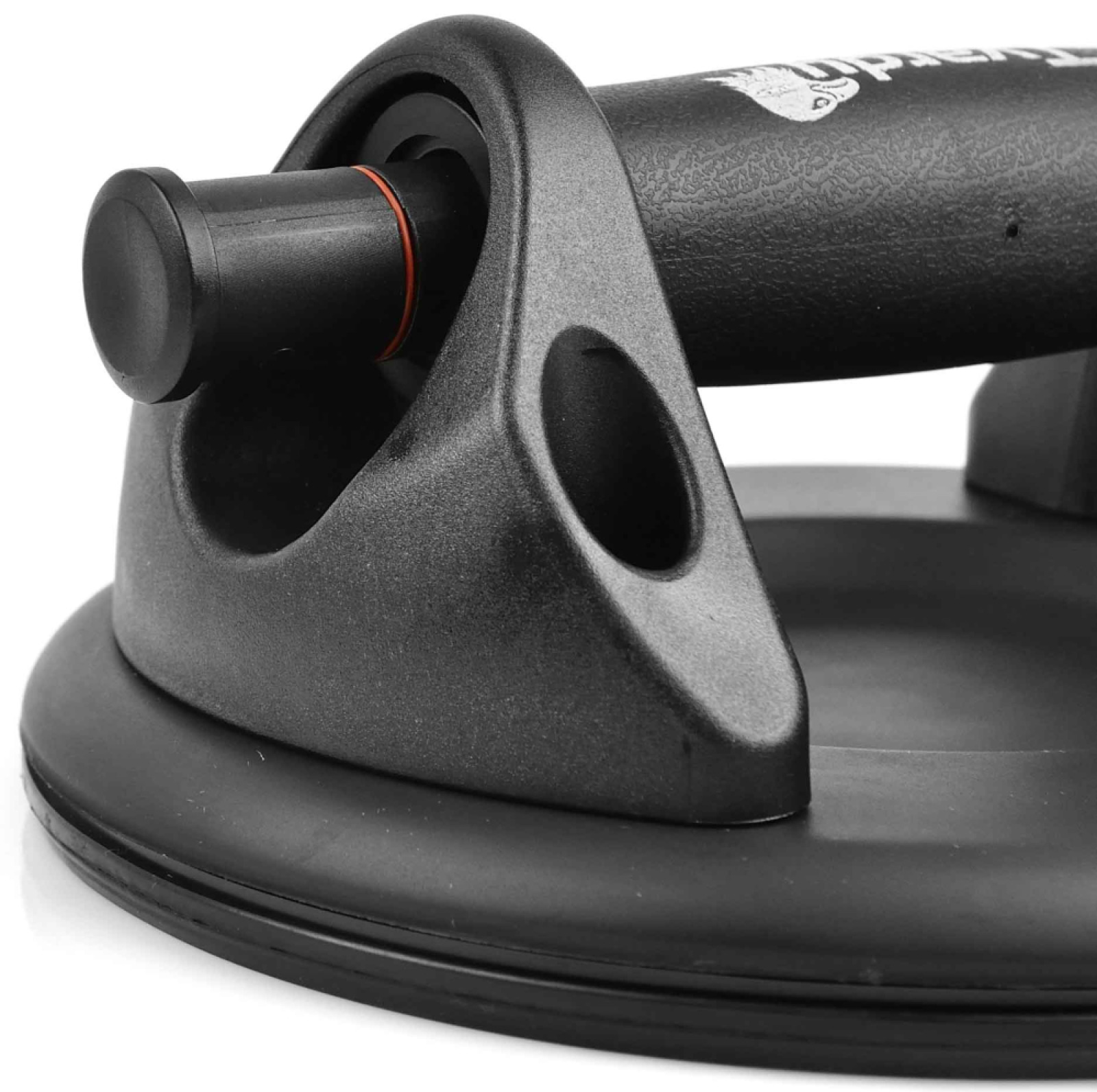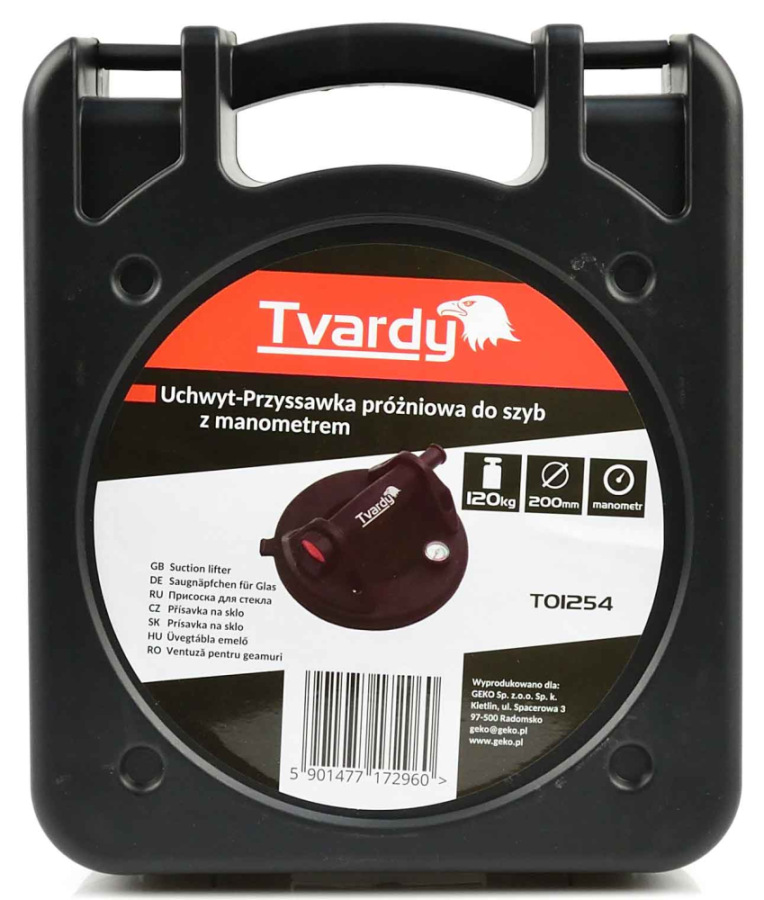 Držiak-Vákuová prísavka na sklo s tlakomerom určená na prenášanie rôznych prvkov s hladkým povrchom. Valec pumpovacieho systému je vyrobený z odolného hliníka potiahnutého príjemným silikónovým materiálom, ktorý zaisťuje bezpečné a isté uchopenie pri prenášaní.