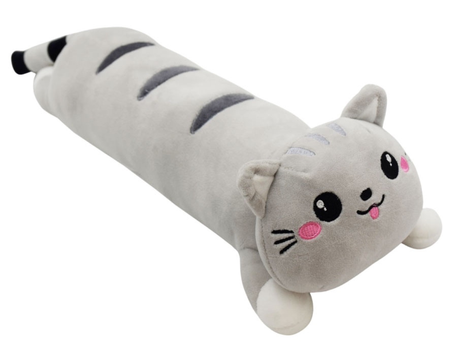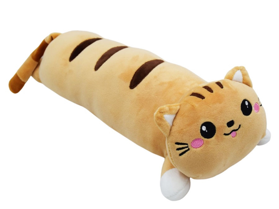 Plyšová 50cm mačička. Vhodná aj ako vankúš alebo dekorácia. Možnosť výberu z dvoch farieb - hnedá alebo sivá.