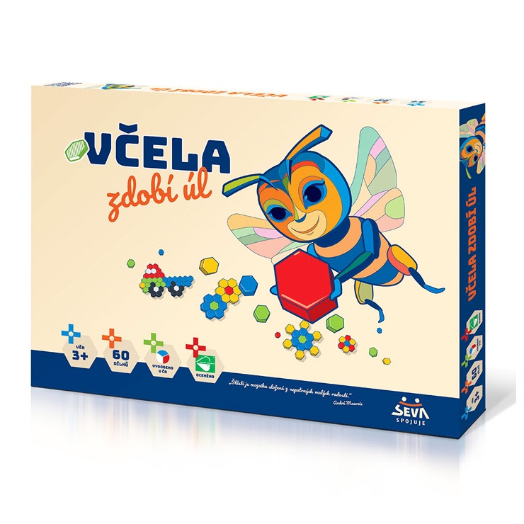Stavebnica mozaikového typu Včela zdobí úľ je nielen skvelá hračka, ale aj výborná vzdelávacie pomôcka pre predškolákov. Deti predškolského veku si precvičí nielen svoju motoriku, ale naučia sa abecedu (Včela sa učí) alebo základy počítanie (MOSAIC MAXI / 2). Základ stavebnice tvorí podložka, ktorá pripomína včelieho plástu.
