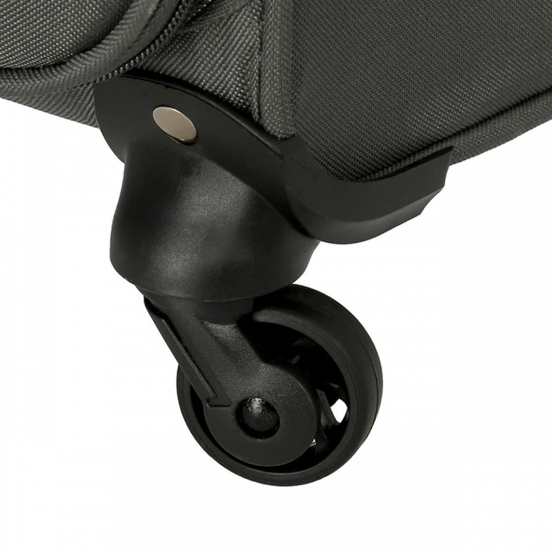 Kufor je uzatvárateľný zipsom a vybavený integrovaným číselným zámkom. Teleskopická rukoväť a štyri kolieska otočné o 360° zabezpečujú pohodlný pohyb aj pri plnom zaťažení.