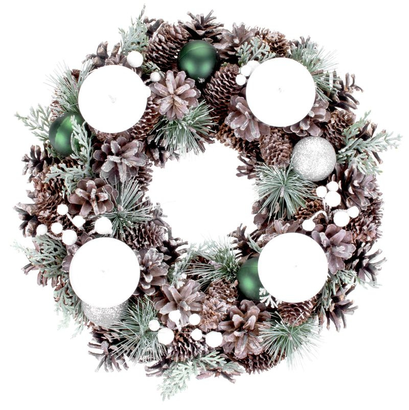 Veniec MagicHome Vianoce, prírodný, adventný, so zelenými guľami, 34 cm