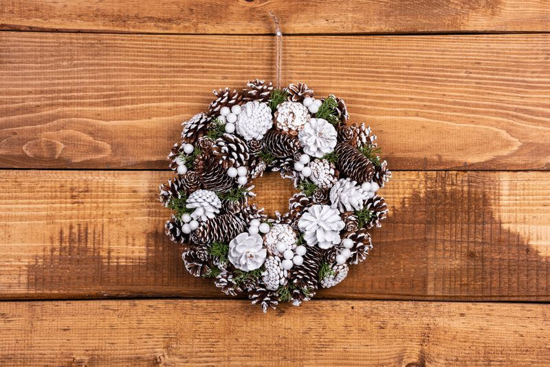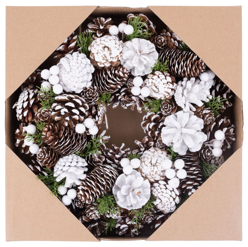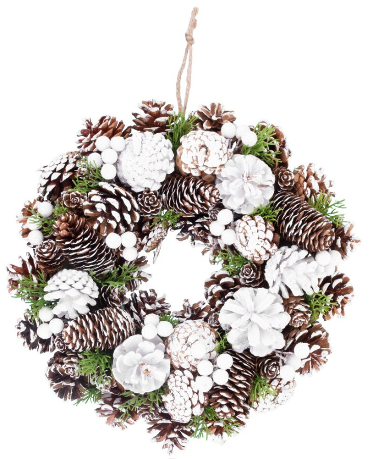 Veniec MagicHome Vianoce, so šiškami, zasnežený, závesný, 32x08x32 cm