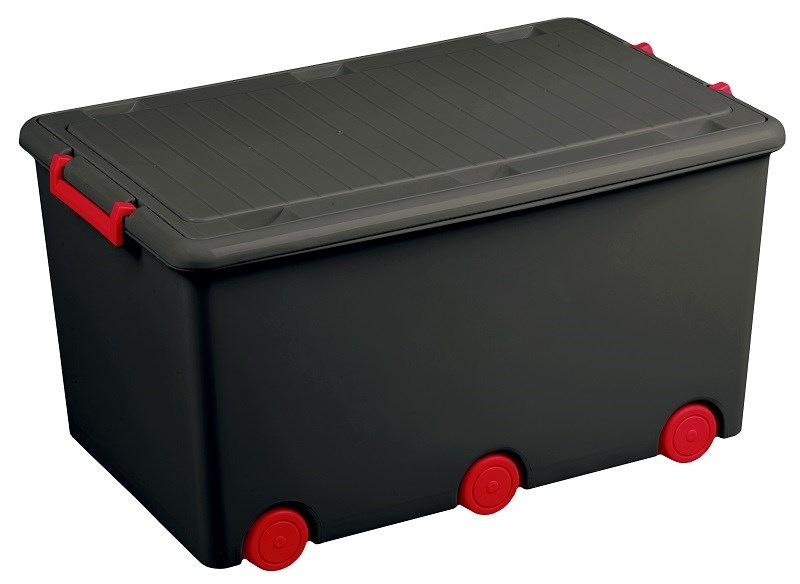 Viacúčelový box na hračky na kolieskach Tega grafitovo-červený