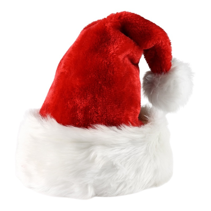 Klasická červená vianočná čiapka s bielym lemom a brmbolcom je ideálnym doplnkom pre vianočné obdobie, ako ku kostýmu, tak aj pre domácu pohodu. Hebký plyšový materiál zaistí pohodlné nosenie a sviatočný vzhľad.
