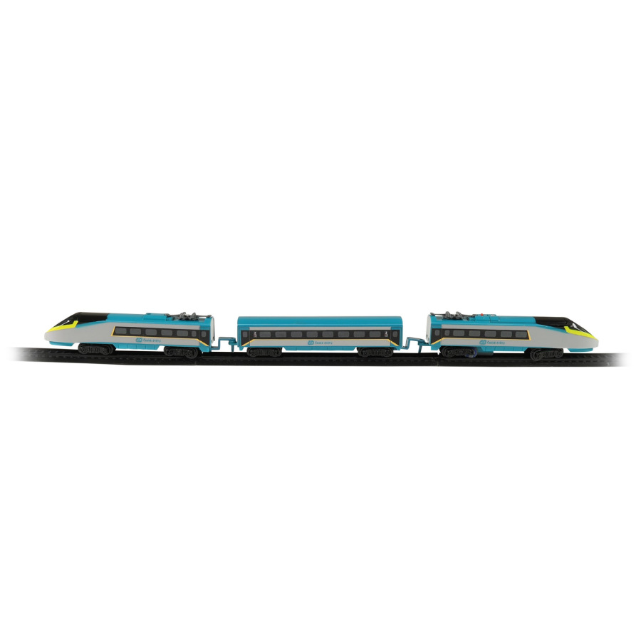 Milujete cestovanie vlakom? Tak zostavte koľaje, postavte na ne lokomotívu, pripojte vagóny a hor sa za dobrodružstvom! Originálny vlak Pendolino obsahuje prednú a zadnú lokomotívu a 1 vagón, 8 zahnutých a 4 rovné koľaje. Je možné vytvoriť koľajisko až do veľkosti 96 x 58 cm. Rozteč koľají je 1,4 cm. Lokomotíva meria na dĺžku 14 cm a vagón 13,5 cm. Lokomotíva jazdí na 1 ks AA batérie nie je súčasťou, na streche lokomotívy vypínačom ON/OFF zapnuté/vypnuté uvediete vlak do chodu. Vlak Pendolino MINI je možné kombinovať s vlakom RegioJet MINI a Českej dráhy MINI.