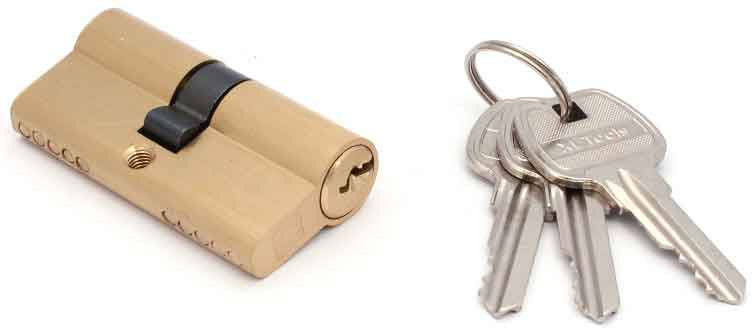 Vložka stavebná 30-35, 3 kľúče + skrutka, mosadz