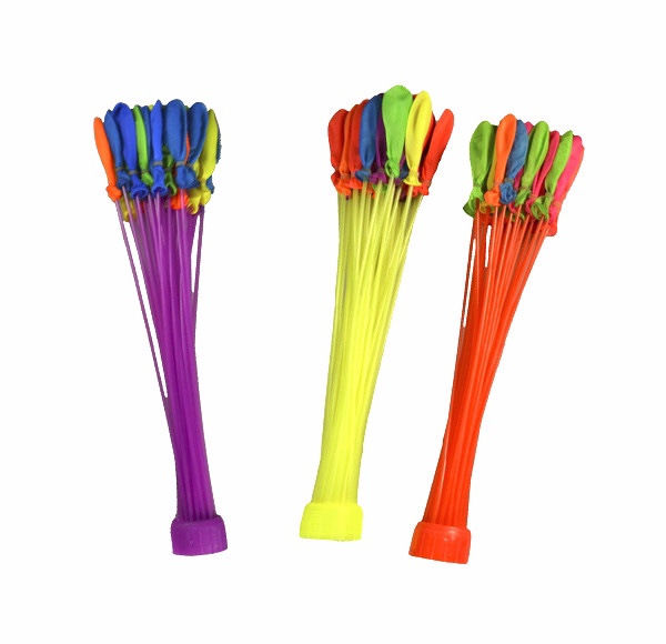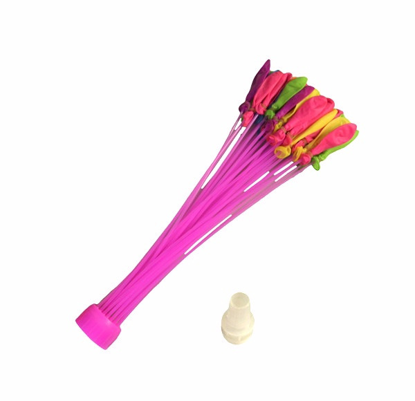 Vodné bomby Happy Balloons, v balení je strapec s 37 balónikmi a redukciou na batériu pre jednorazové naplnenie.