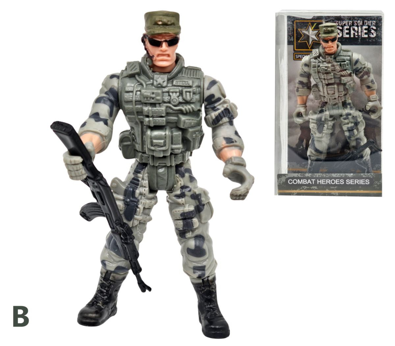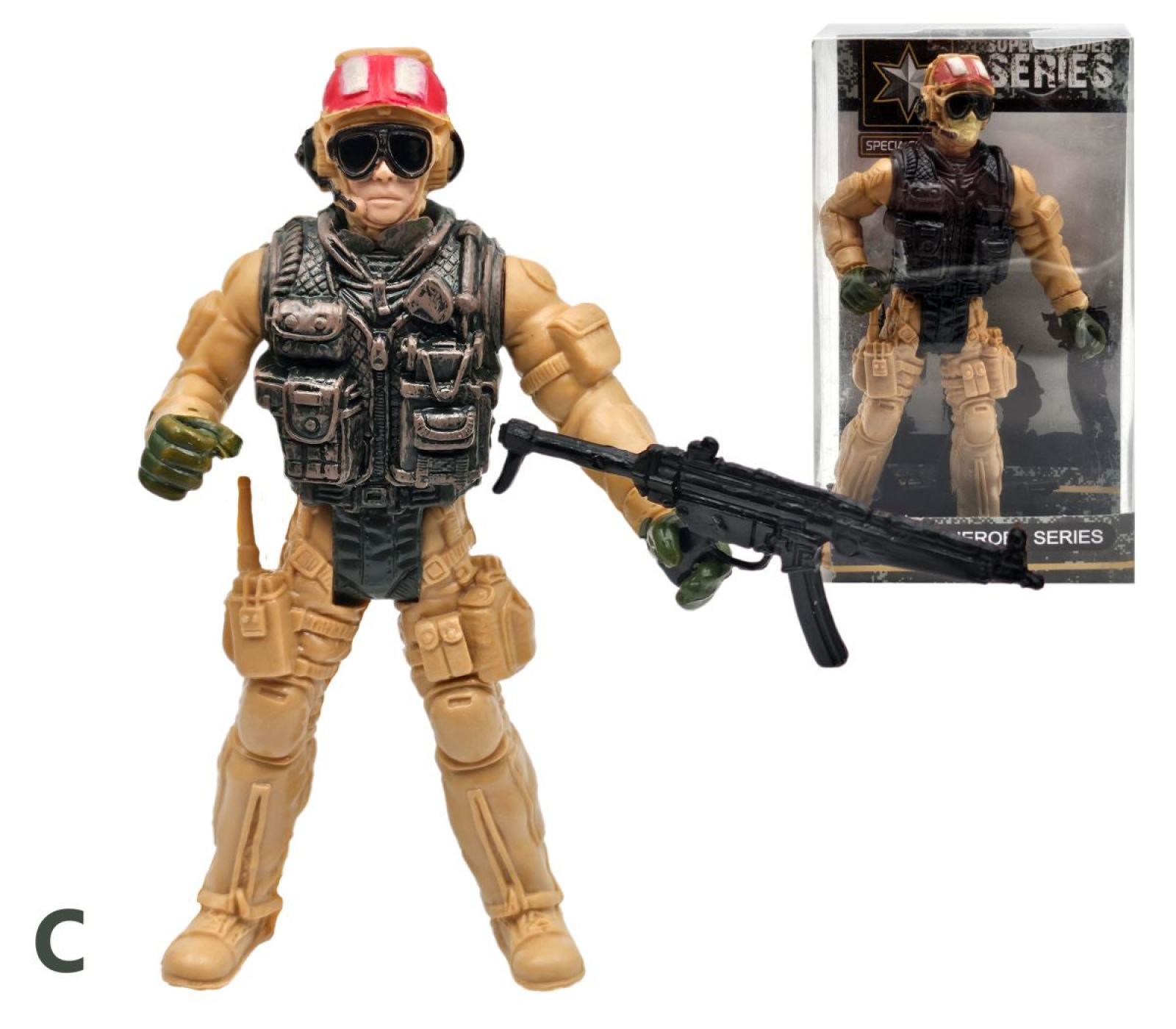 Vojak figúrka, akčná hračka, s ktorou si deti môžu vytvárať vlastné vojenské misie. Má rozmery 9,5 cm. Balené v boxe po 24 ks. Cena je za kus. Vhodné pre deti vo veku 3+ rokov.