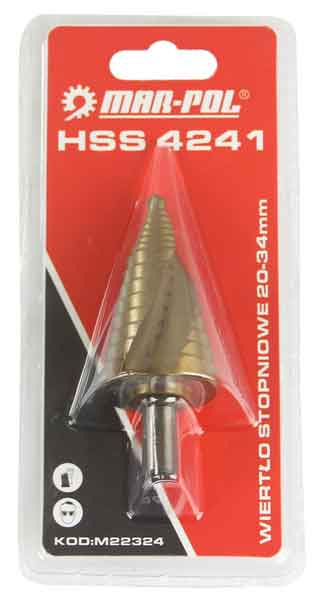 Vrták stupňovitý 20-34 mm do plechu HSS4241, krok 2mm, špirálová drážka, MAR-POL