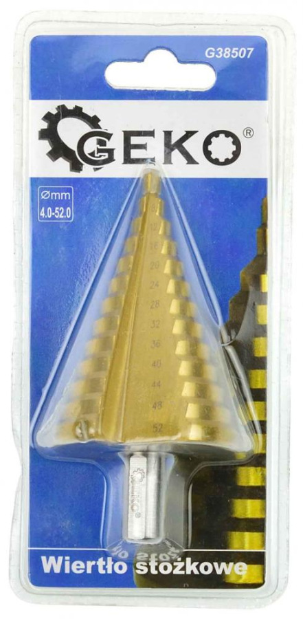 Vrták stupňovitý 4-52 mm do plechu, krok 4mm, TiN, GEKO