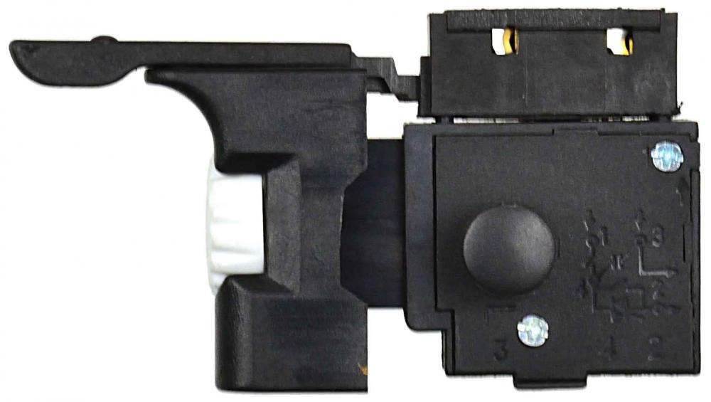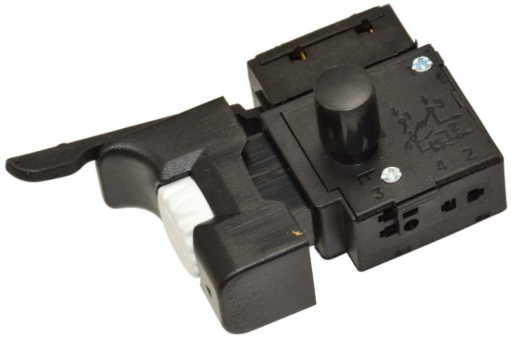 Tlačidlový spínač s reguláciou rýchlosti , zmenou smeru otáčania a poistným tlačidlom.