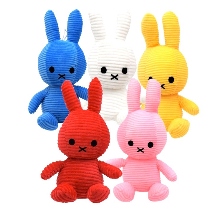 Roztomilý plyšový sediaci zajačik s vyšitými očkami. Možnosť výberu zo šiestich farieb - ružový, modrý, biely, žltý alebo červený.