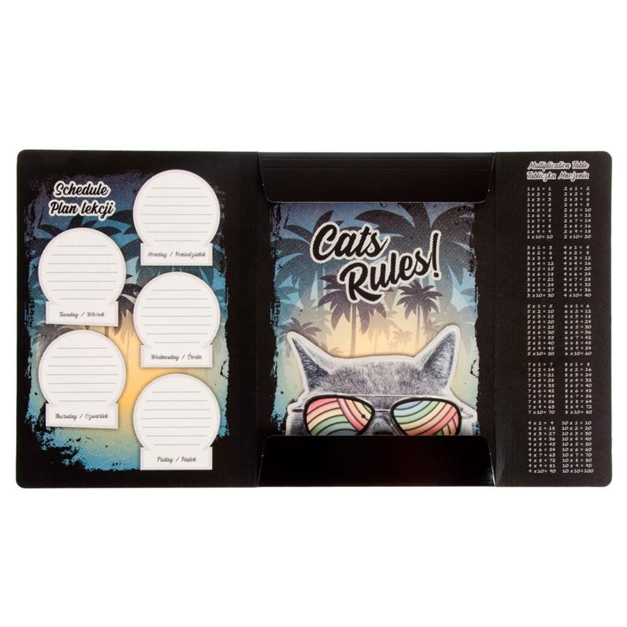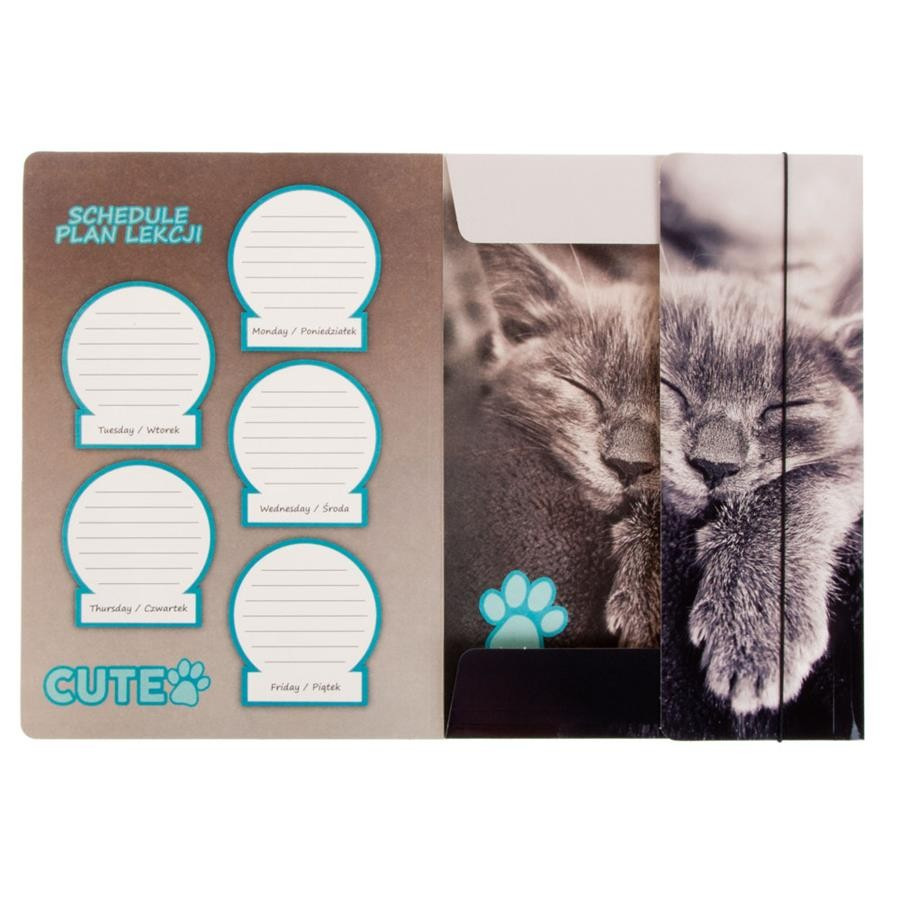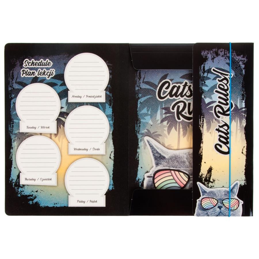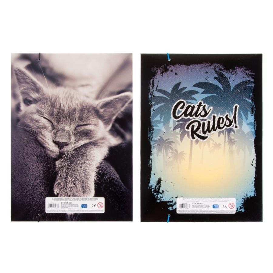 Zakladač s gumičkou na uloženie dokumentov s grafikou s mačkami. Produkt je určený pre deti vo veku 3+. Rozmer je A4.