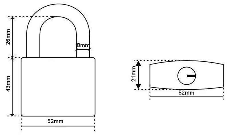 - Rozmery visiaceho zámku: 50x52x21 mm (šírka x výška x hrúbka)