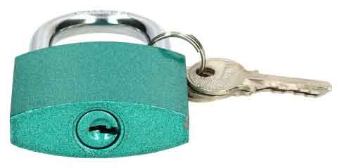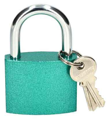Sada obsahuje tri patentové kľúče, ktoré poskytujú dodatočnú bezpečnosť. Visiaci zámok je dostupný v rôznych farbách ako modrá, červená, fialová, zelená a zlatá.