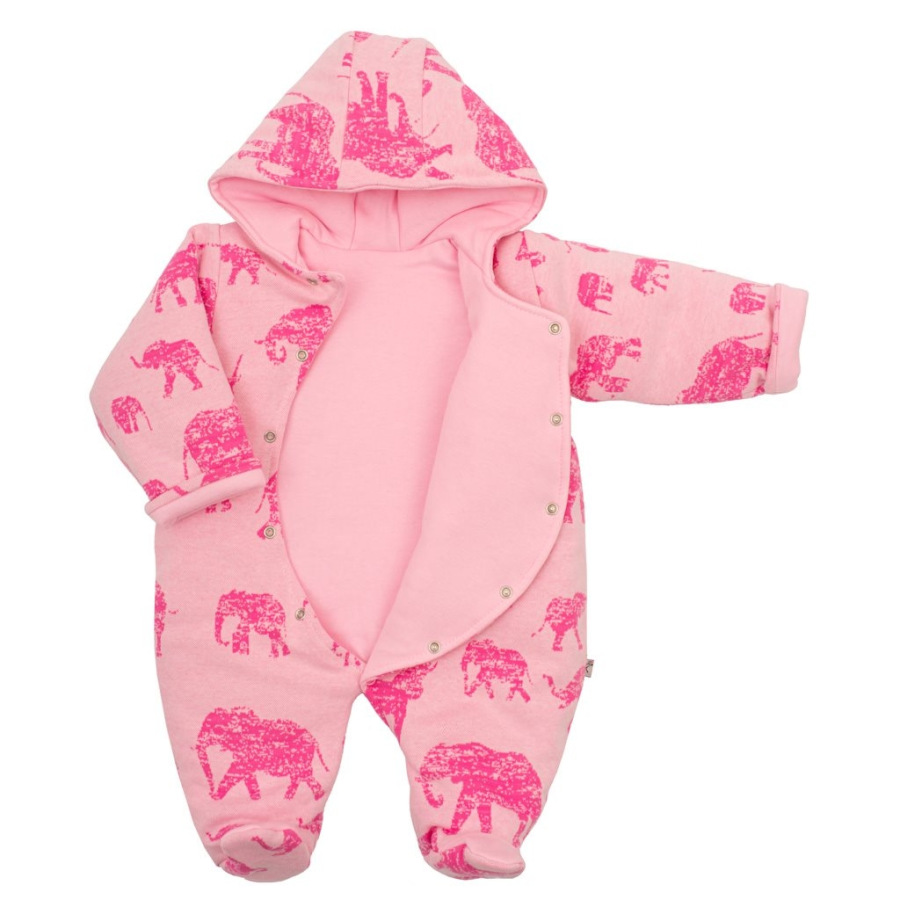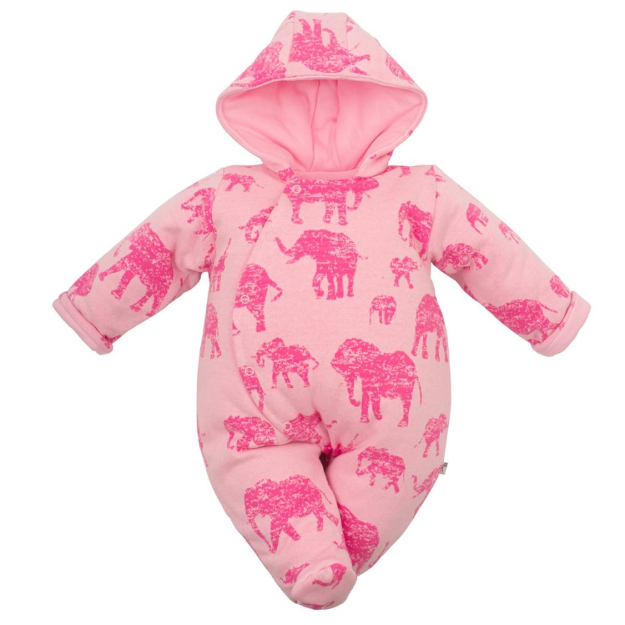 Zateplená dojčenská kombinéza s kapucňou Baby Service Slony ružová 74 (6-9m)
