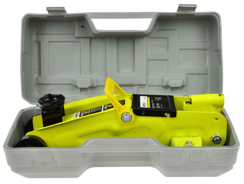 Pojazdný hydraulický zdvihák s maximálnou nosnosťou 2 tony. Vybavený oceľovými kolesami a rukoväťou na prenášanie. Ideálne pre domácu garáž. Výrobok je zabalený v pohodlnom a odolnom plastovom obale.