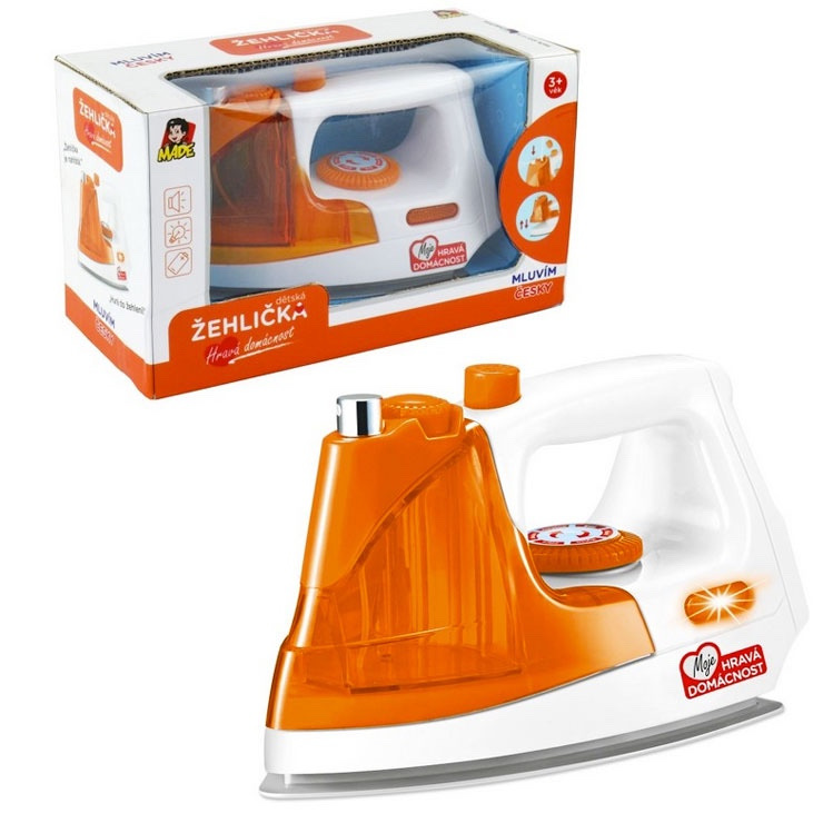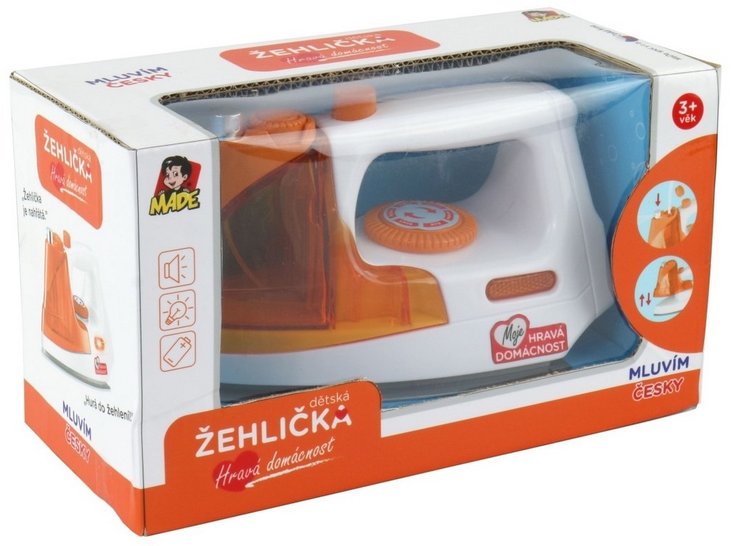 Žehlička na batérie s českým hlasom. Žehlička je napájaná 2 x 1,5 V AA batériami. Žehlička je nahriata, hurá do žehlenie a ozve sa príjemná melódia. Žehlička má český box v modernom dizajne. Rozmer boxu 24 x 11 x 14 cm.
