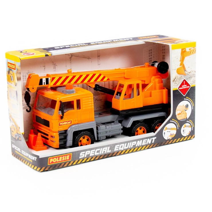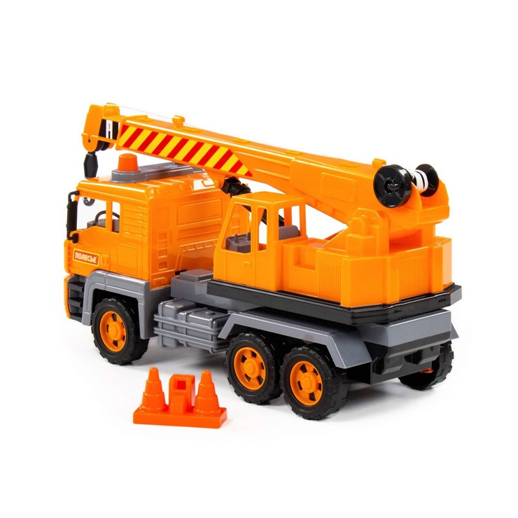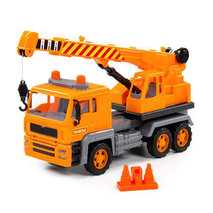 Žeriavový vozík je zaujímavým typom zariadenia. Hračka má pohyblivý otočný tanier a tiež výsuvný výložník s hákovým zavesením, ktoré je možné zdvíhať a spúšťať pomocou ručného mechanizmu. Dizajn žeriavu predpokladá prítomnosť troch párov kolies a ku hračke sú pribalené stavebné kužele, ktoré spestria a doplnia hru!