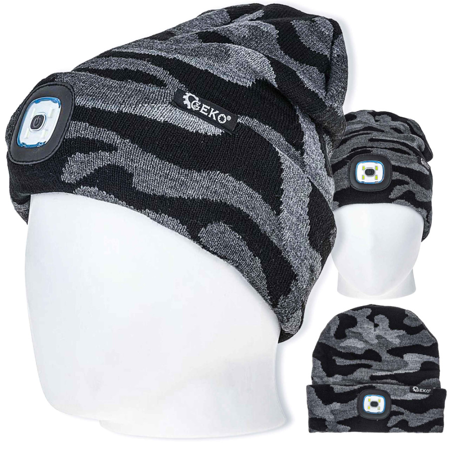 Teplá a funkčná zimná čiapka s nabíjateľným LED svetlom so svietivosťou 150 lúmenov.
