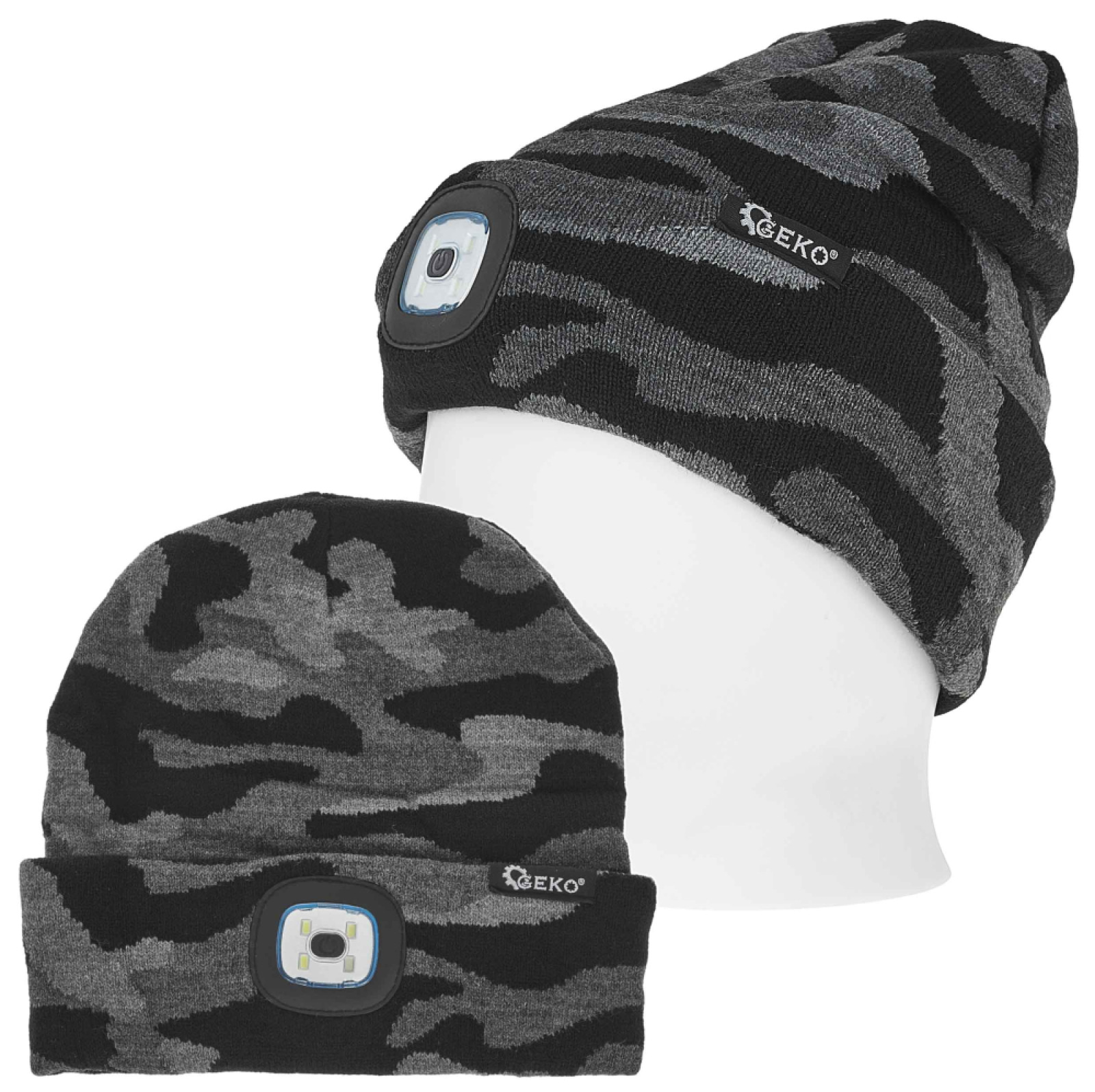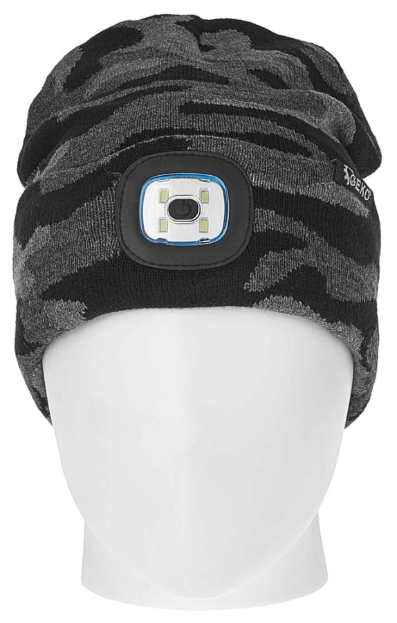 Zimná čiapka s LED svetidlom, čierno sivá, GEKO