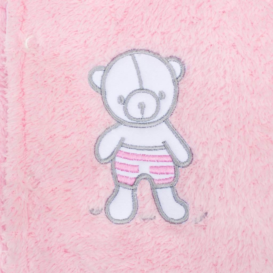 Ziimný dojčenský kabátik s kapuckou New Baby Nice Bear pre Vaše bábätko. Zimný kabátik je vyrobený z dvoch vrstiev kvalitného materiálov - vrchného hrubšieho, hrejivého fleecového materiálu a spodnej bavlnenej podšívky, ktorá je celopotlačená medvedíkmi. Kabátik zdobí obrázok medvedíka a má praktickú kapucňu s roztomilými uškami. Zapínanie na cvočky po celej dĺžke. Zloženie: vrchná vrstva 80% bavlna, 20% polyester, podšívka: 100% bavlna, výplň: antialergické vlákno.
