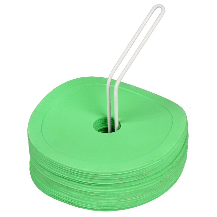 Sada šestnástich farebných vytyčovacích značiek v tvare kruhu. Sada značiek na podlahu Merco je vyrobená zo zdravotne nezávadného a ľahko umývateľného TPE materiálu. Priemer značky je 15 cm a hmotnosť približne 50 g.
