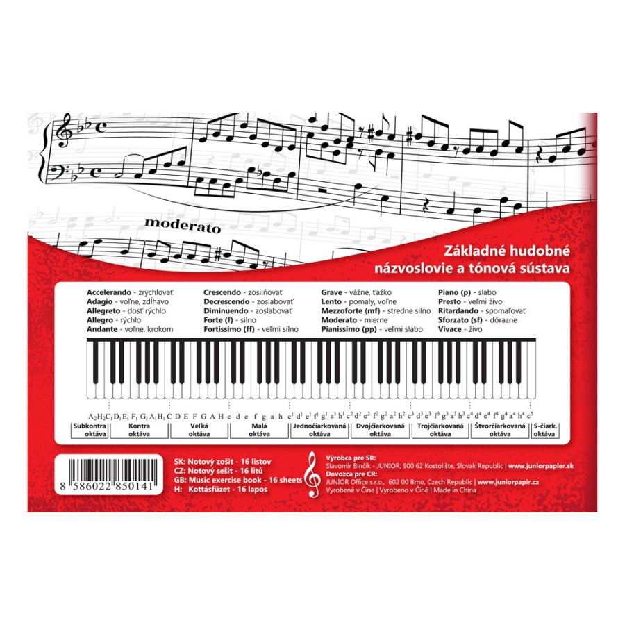 Zošit notový - 16 listový Junior, má rozmery 208 x 147 mm. Cena je za 1 kus.
