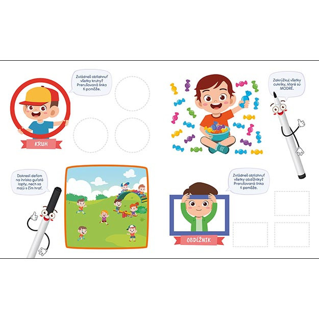 Zošity pre predškolákov Farby a tvary, obsahuje 22 stierateľných strán s úlohami na trénovanie predškolských zručností. Fixka je súčasťou balenia. Veľkosť zošita je 285 X 230 X 17 mm. Cena je za kus. Vhodné pre det vo veku 3+ rokov.