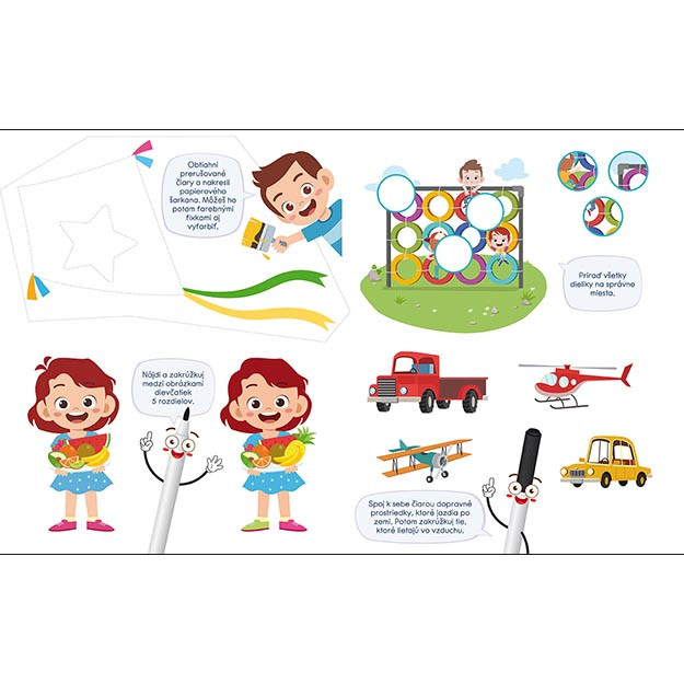 Zošity pre predškolákov Spájanie a hádanky, obsahuje 22 stierateľných strán s úlohami na trénovanie predškolských zručností. Fixka je súčasťou balenia. Veľkosť zošita je 285 X 230 X 17 mm. Cena je za kus. Vhodné pre det vo veku 3+ rokov.