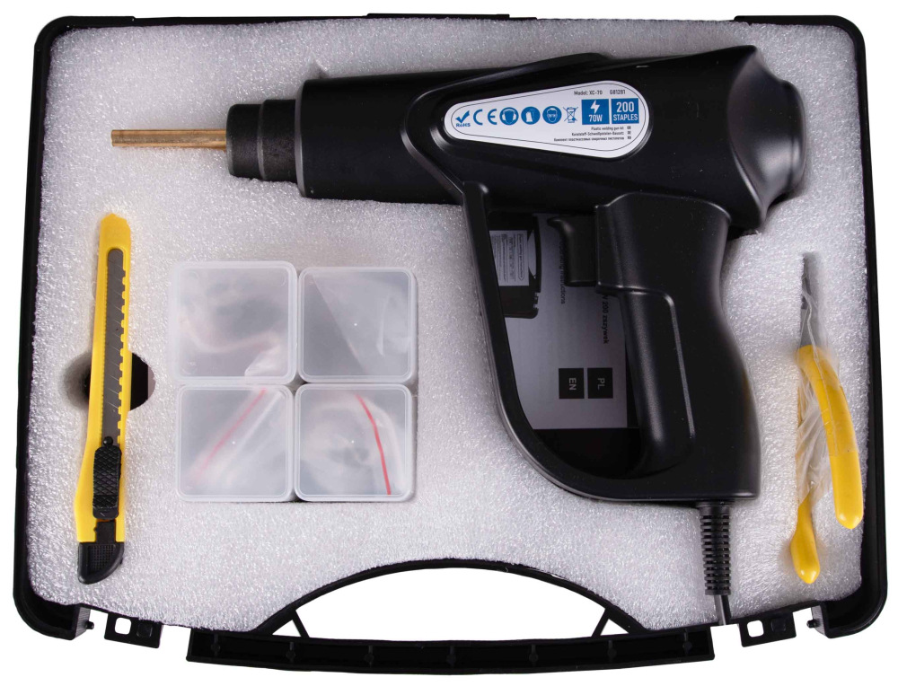 Moderná zváračka a zošívačka plastov s výkonom 70 W vybavená 200 sponkami rôznych typov. Toto je nástroj, vďaka ktorému bude vaša oprava alebo projektovanie rýchle, presné a mimoriadne efektívne.