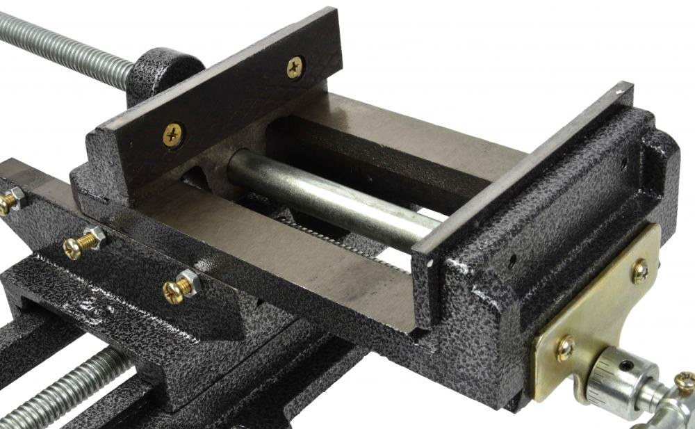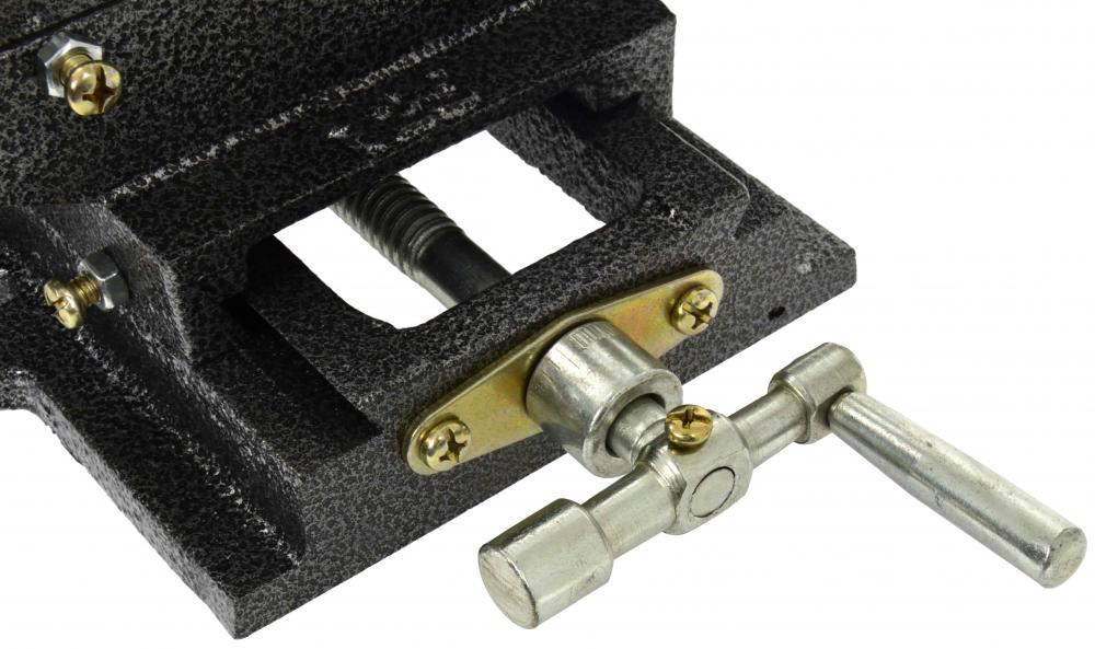 Strojný zverák s drážkovanou základňou pre jednoduchú montáž a umiestnenie zveráka. Vyrobené z liatej ocele s odolnými oceľovými čeľusťami s priečnymi drážkami pre lepšie uchopenie obrábaného predmetu.