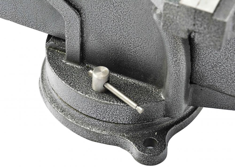 Otočný zámočnícky zverák vyrobený z vysoko kvalitných materiálov. Zverák s oceľovými čeľusťami s protišmykovými priečnymi drážkami. Odolná a pevná konštrukcia umožňuje bezpečne pripevniť vybraný predmet do zveráka a zaručuje jeho dlhú životnosť.