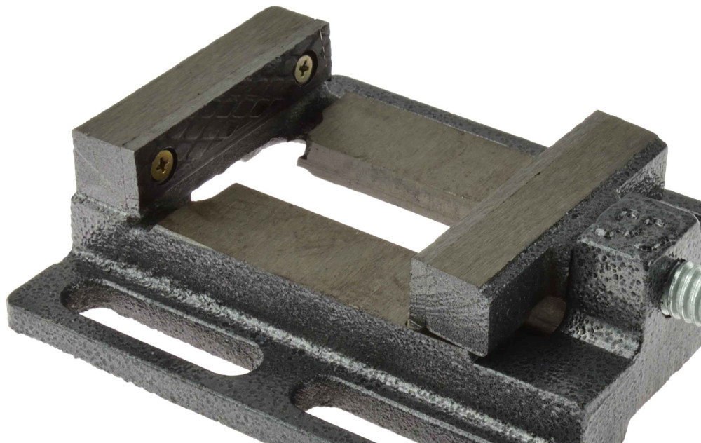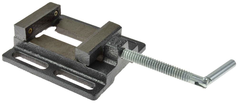 Strojný zverák s drážkovanou základňou pre jednoduchú montáž a umiestnenie zveráka. Vyrobené z liatej ocele s odolnými oceľovými čeľusťami s priečnymi drážkami pre lepšie uchopenie obrábaného predmetu.